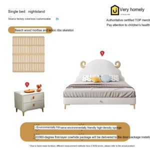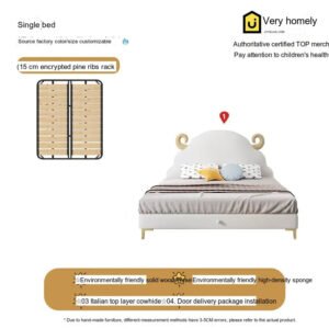 The Oliver bed is constructed from imported, high-quality solid wood, which ensures it is robust and long-lasting. The use of top-layer cowhide adds to the luxurious feel while offering excellent abrasion resistance. Unlike standard options, this bed is formaldehyde-free and has been manufactured under strict environmental controls, ensuring that it carries no irritating odors, making it safe for your little ones to sleep in.